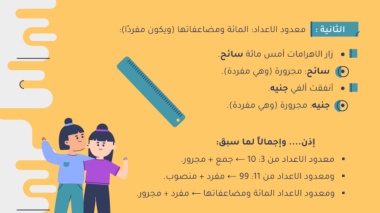 ?الثانية ? :?معدود الاعداد? :?المائة ومضاعفاتها (ويكون مفر ًدا)?:??