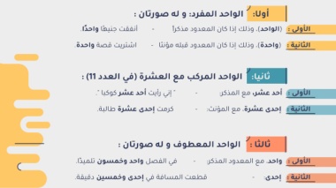 ?الأولى ? :?واحد? ،?مع المعدود المذكر? - :?في الفصل واحد وخمسون تلمي ًذا?.??
